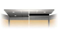 When used for passengers, a convertible ceiling looks like a conventional ceiling. When the elevator is needed for service, the rear half of the ceiling can be slid up and above the front half to reveal a top hat. All this can be done in seconds by one person without tools and put back in place afterwards just as easily.