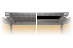 To transition a convertible ceiling, it is just a matter of lifting the half ceiling, tilting it, and then sliding it into the pocket.
